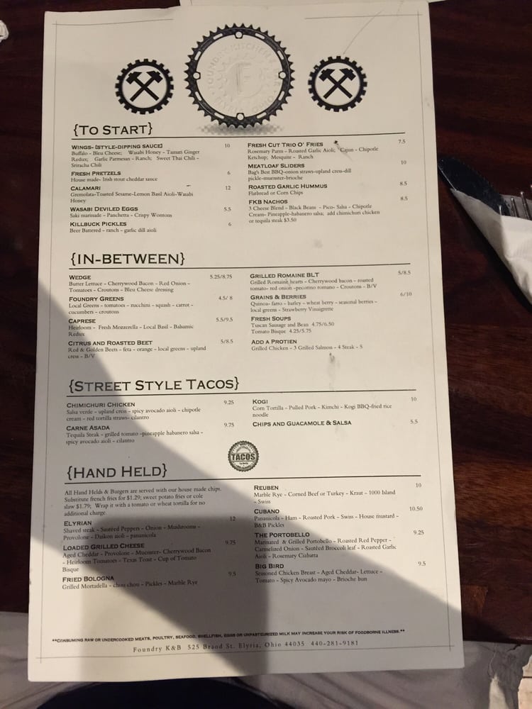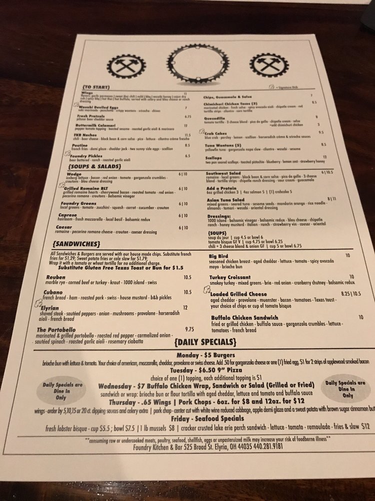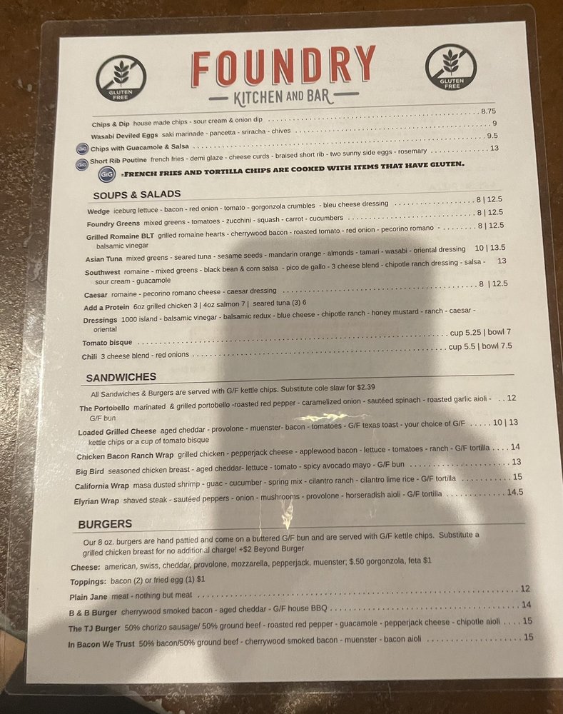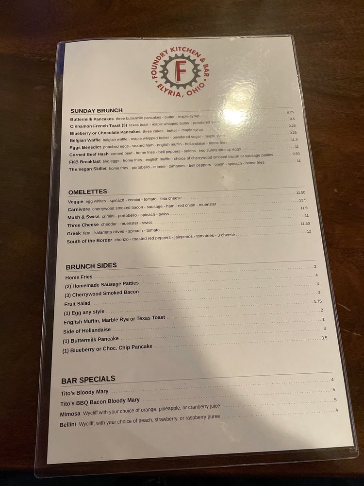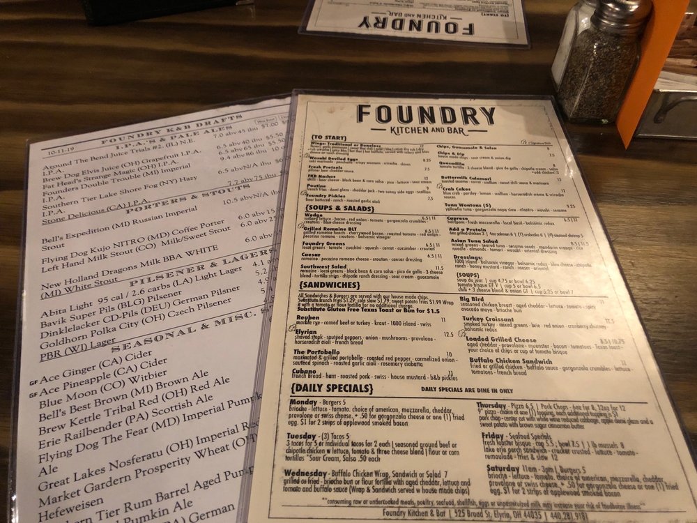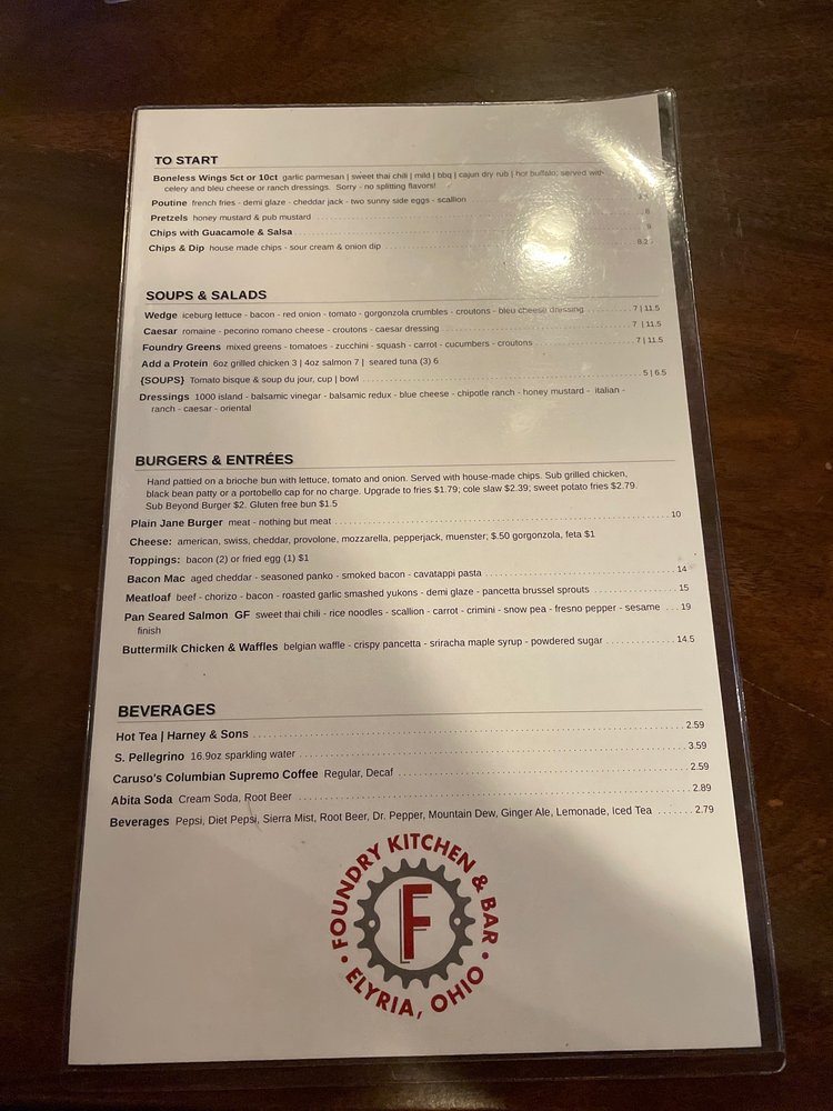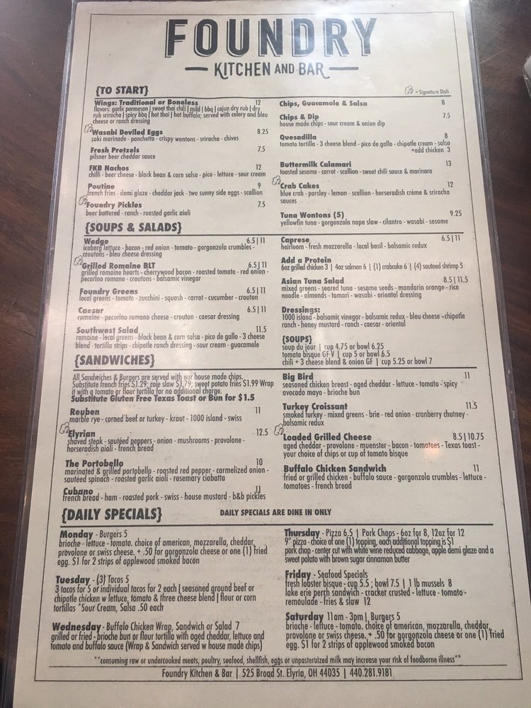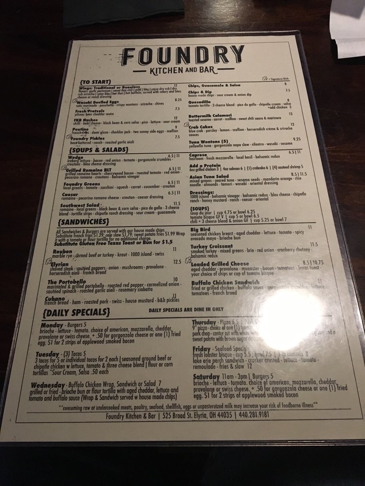 Foundry Kitchen and Bar Menu